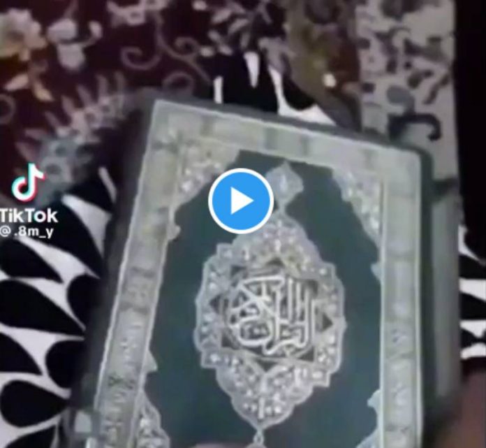 Dans un extrait vidéo, un homme montre un exemplaire du Saint Coran qui aurait été mangé par les termites. Les insectes n’auraient pas osé s’en prendre à une seule lettre du Livre d’Allah.
