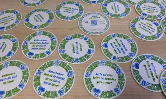 Ces sous-verres pour bières comprennent des questions telles que «Les footballeurs sont-ils autorisés à manger pendant le Ramadan ?» ou encore «Qui est Mohammed ?». Les réponses à ces questions se trouvent sur la page Web, mentionnée dans les sous-bocks.