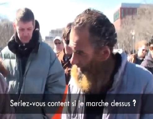 De nombreuses personnes (notamment de confession chrétienne) ont décidé de se réunir atour d’un homme, en brandissant des pancartes mettant en avant des messages tels que: « on t’aime Jésus » ou bien « nous n’oublierons jamais le 11 septembre » ou encore « Éloigne-toi 100 mètres de moi ou bien je te tire dessus ».