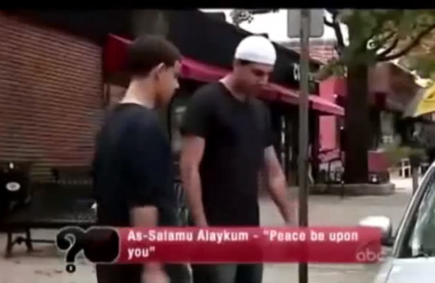 La caméra cachée se déroule aux USA et met en scène un acteur se faisant passé pour un musulman et portant une Chéchia sur la tête. Il est assis à côté de sa voiture en panne et attend désespérément que quelqu’un lui propose son aide.