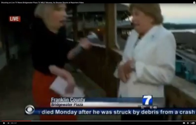 Sur les images filmées par le cameraman mort, on entend d’abord des coups de feu. La caméra tombe ensuite au sol et filme les jambes du tireur qui abat hors du champ de la caméra la journaliste dont on entend seulement les cris. Sur le plateau, la présentatrice de l’émission en direct réagit avec stupeur.