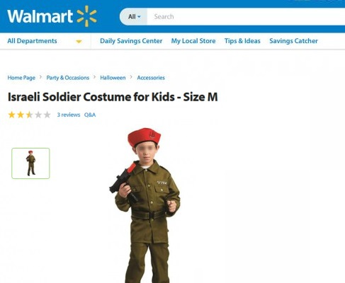 Le premier étant une tenue de soldat israélien pour enfant (photo ci-dessous). Le message publicitaire visait alors une clientèle américaine juive. Voila le type de propagande hideuse que l’on pouvait lire :