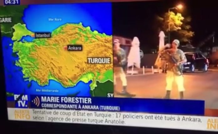 Pire encore, la correspondante ose dire que la tentative de coup d’Etat serait « en bonne voie » et évoque l’attaque du siège de l’AKP (le parti de Recep Tayyip Erdoğan) en précisant qu’il est celui du parti au pouvoir… « ou au pouvoir jusqu’à maintenant », comme s’il était déjà prévu de parler de renouveau…
