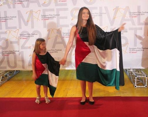 A l’occasion de la cérémonie d’ouverture du festival du film à Sarajevo (Bosni-Herzégovine), Sabina Šabić, une productrice déléguée au sein d’une compagnie théâtrale a défilé aux côtés de sa fille sur le tapis rouge, toutes deux vêtues de robes aux couleurs du drapeau palestinien !