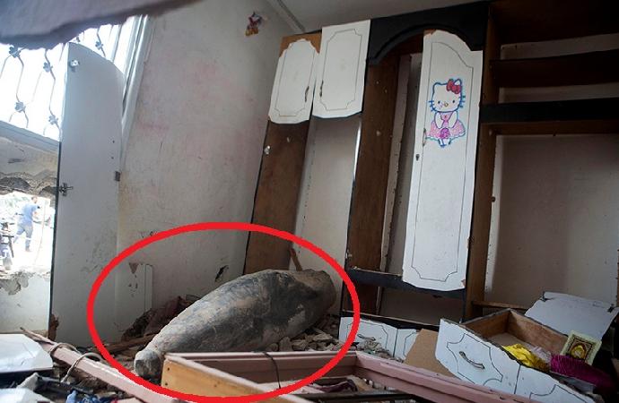 Mais le plus étrange, c’est de voir ce gros missile au centre du cliché qui n’a pas explosé: il est resté complètement intact Soubhan’Allah!