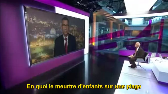 Ses questions étaient tranchantes et il n’a pas hésité à confronter le sioniste aux barbaries commises par son peuple sur les gazaouis en évoquant et en insistant notamment sur les enfants tués sur la plage.