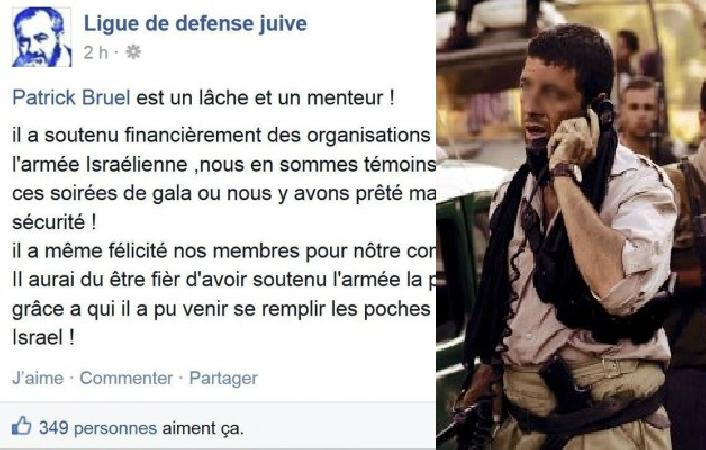 Le chanteur Patrick Bruel, que l’on proclame « porte parole de l’armée de Tsahal » et qui rendait légitimes les nombreux massacres perpétués par l’armée israélienne qu’il nomme « dommages collatéraux », dément pourtant les rumeurs selon lesquelles il financerait l’armée de Tsahal.