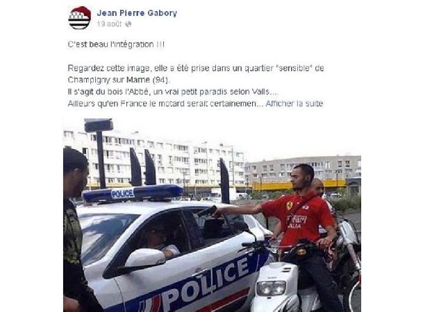 Un individu a d’ailleurs publié la fameuse photo sur son compte twitter avec un message à caractère un tant soi peu discriminatoire : « C’est beau l’intégration ! Regardez cette image, elle a été prise dans un quartier “sensible” de Champigny sur Marne (94) […]. Mais imaginons un seul instant que le policier commette l’erreur de sortir son arme. Soit il est mort et ce sera un moindre souci pour Taubira. Soit le jeune protégé, cette “chance pour la France” est mort et là c’est la grosse bavure. »