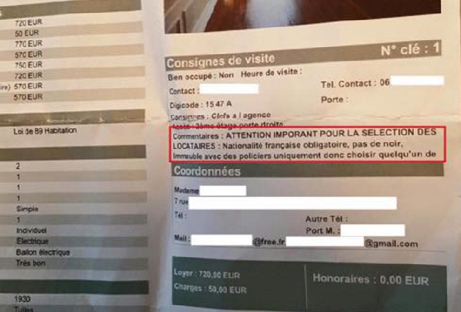 « Attention, important pour la sélection des locataires : nationalité française obligatoire, pas de Noir, immeuble avec des policiers uniquement. »