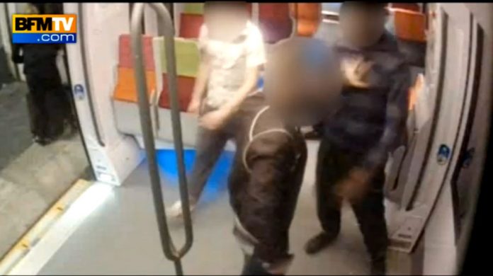 Malgré la gravité des événements, les jeunes totalement remontés contre Sébastien, ne fuient pas, mais au contraire remontent dans la rame pour en finir avec le policier. La vidéosurveillance montre l’un des énergumènes s’emparer de l’arme du fonctionnaire de police pendant que les autres le frappent.