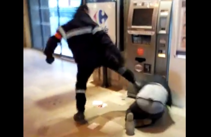 Les images sont éloquentes, le sans-abri ne présente aucun danger pour le vigile qui va pourtant le frapper de toutes ses forces sans que le SDF n’oppose aucune résistance.