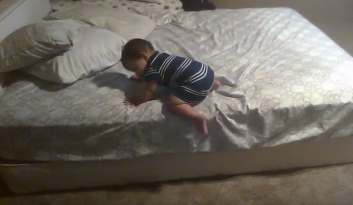 Il a seulement 11 mois, et ce bébé a déjà tout d’un futur génie. Afin de descendre du lit, le bambin a l’ingénieuse idée d’utiliser plusieurs oreillers et ainsi amortir sa chute. C’est à peine croyable !