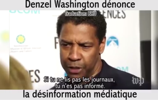 Dans la vidéo suivante, Denzel Washington dénonce la désinformation médiatique qui a des conséquences irréversibles sur l’opinion publique.