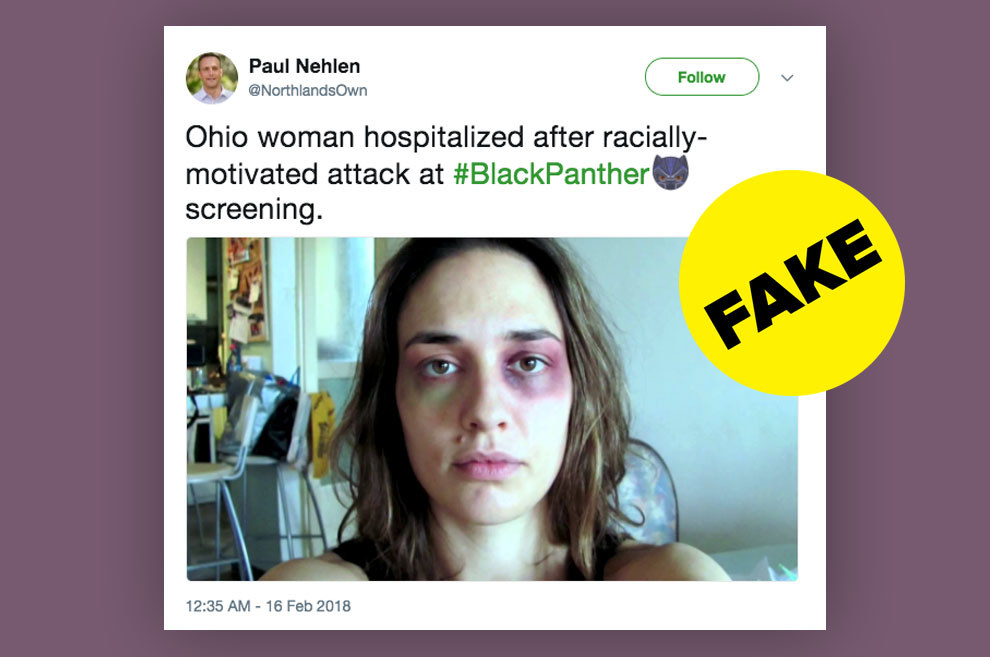 Sur Twitter les fausses nouvelles sur des violences anti-Blancs liées à la diffusion du film «Black Panther» prolifèrent. Chacun y allant de sa (fausse) petite anecdote photos à l’appui pour démontrer que la sortie du film a donné lieu à une violence raciste contre les Blancs.