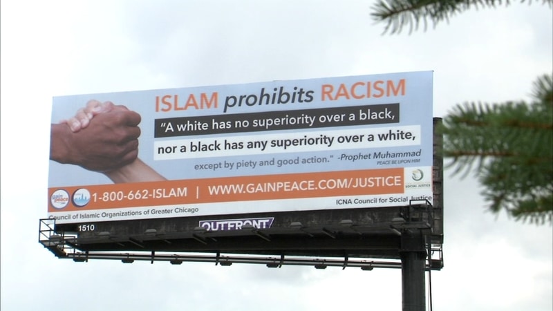 Le panneau d’affichage fait partie d’une campagne lancée à Chicago par les groupes musulmans GainPeace, le Council for Social Justice et le Council of Islamic Organizations of Greater Chicago.