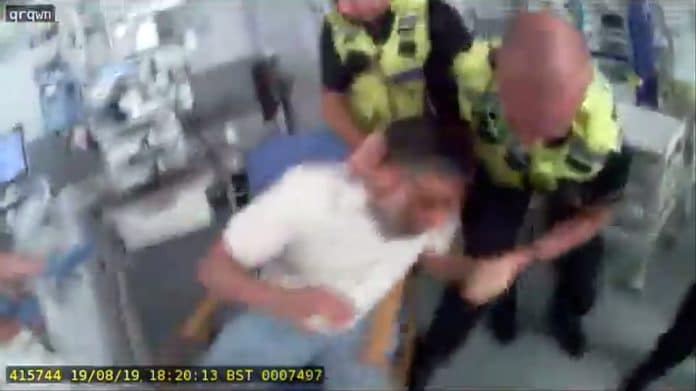 Le film déchirant d’une caméra montre le moment où Rashid Abbasi, un consultant hospitalier de 59 ans, a été arraché à sa fille de six ans gravement malade par un policier le maintenant par le cou.