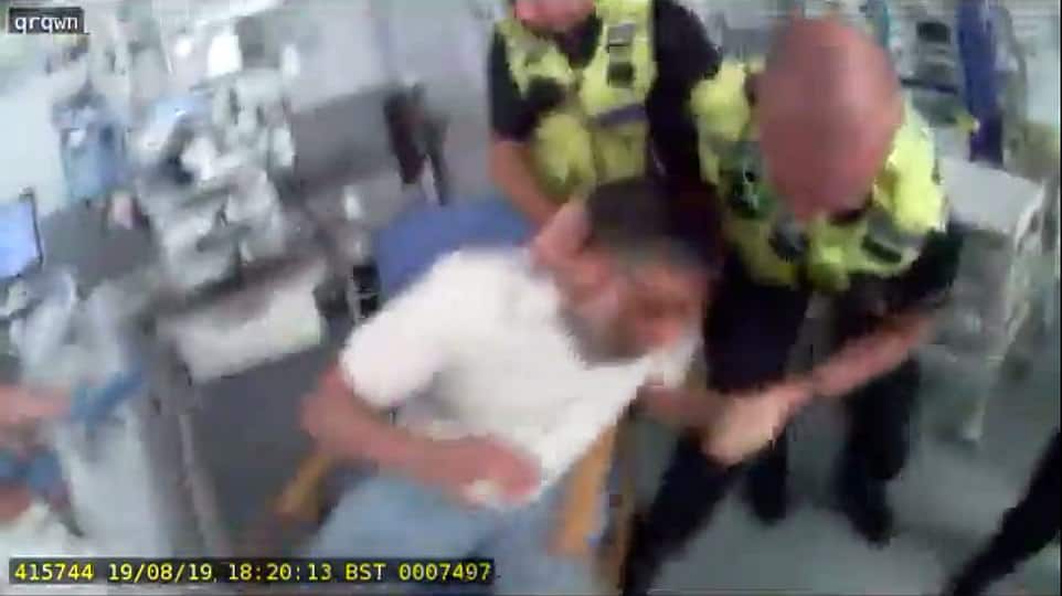 Des images choquantes obtenues par The Mail dimanche montrent comment des policiers ont violemment traîné un père en deuil au chevet de l’hôpital de sa fille de six ans mourante peu de temps après qu’on lui ait dit que son système de survie allait être retiré.