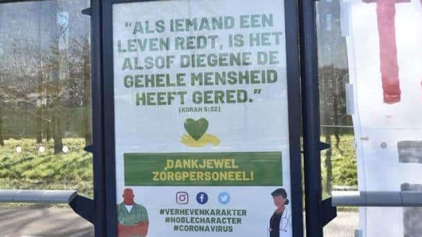 C’est ainsi qu’un verset du Coran a été inscrit sur une affiche aux Pays-Bas afin de remercier le personnel de santé qui se bat chaque jour aux côtés des malades contre le Coronavirus.