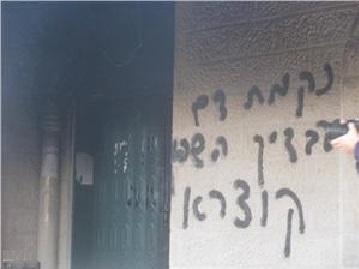 Sur l’entrée de la mosquée, il a remarqué ces mots écrits en hébreu : « C’est pour venger Qasra », ainsi que de nombreuses insulte sen hébreu et des slogans visant l’Islam.