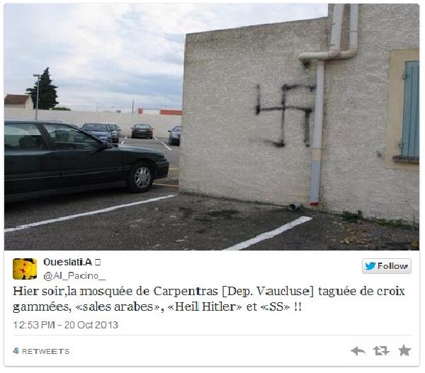La mosquée de Carpentras (Vaucluse) a été vandalisée entre vendredi soir et samedi après-midi.