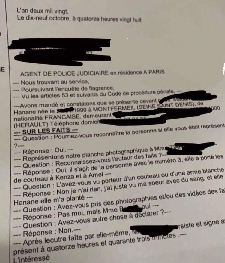 Le Dimanche 18 Octobre 2020 à 20 H, au Champ de Mars, au pied de la tour Eiffel, deux femmes musulmanes ne portant ni le voile, ni le foulard, ont eu une altercation avec deux femmes françaises qui leur reprochaient de ne pas tenir leur chien en laisse. La discussion a dégénéré, les deux femmes françaises, effectivement avaient sur elles des armes blanches et se sont attaqué aux femmes musulmanes. Il est à préciser que les agresseurs étaient alcoolisés et en état d’ébriété. Après leur garde à vue, elles furent présentées au Parquet qui a retenu contre elles la tentative de meurtre, ce qui est plus grave qu’un acte antimusulman. »