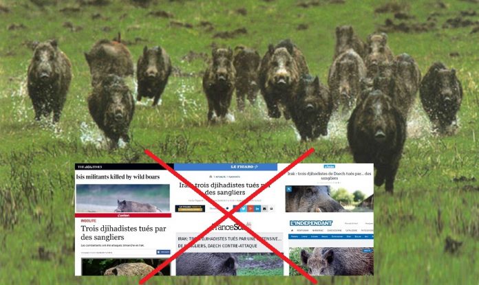 C’est l’info (ou pas) que la quasi totalité des média-poubelles ont pris un malin plaisir de relayer. En effet, selon la plupart de ces journaux, trois terroristes de Daesh auraient été tués par des sangliers…