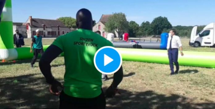 Emmanuel Macron a rencontré mercredi des jeunes au château de Chambord. Le président en a profité pour jouer au foot avec plusieurs d’entre eux quand il a tiré, sans le faire exprès, dans le visage d’un garçon.