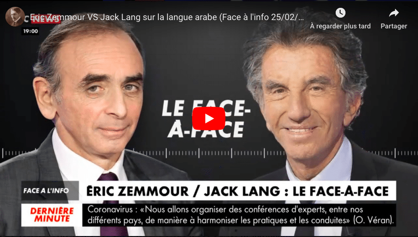 « Je conteste votre point de vue historique. Je disais que les conquérants arabes ont imposé leur langue, leur dieu et le Coran », a argué Eric Zemmour. Et Jack Lang de rétablir la vérité: « C’est votre fanatisme qui l’emporte sur tout, votre obscurantisme qui domine la vérité et la raison ».