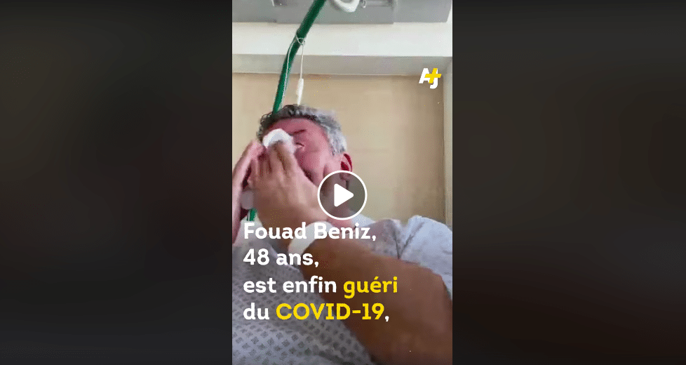 Le témoignage poignant de Fouad Beniz qui a survécu au Covid-19 après 12 jours d’hospitalisation, diffusé sur l’Aj+ Français, ne laisse personne insensible. « Le personnel soignant, ils m’ont sauvé la vie. Je ne sais pas comment les remercier, mais ils ont fait du bon boulot.»