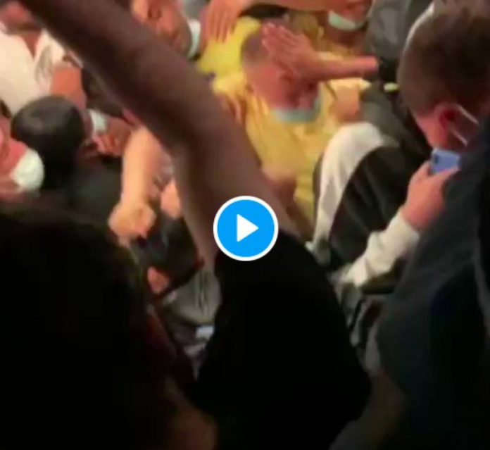 Là, plusieurs autres hommes se mêlent à la rixe avant que l’un d’eux ne reçoit un violent coup de poing à la tête.
