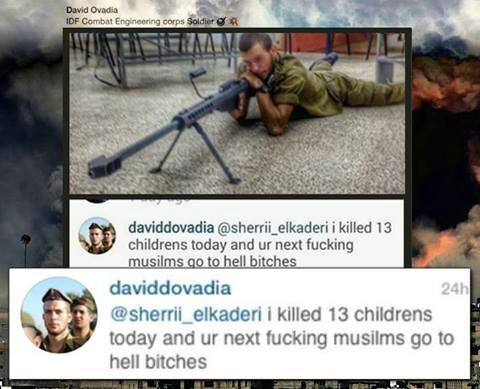 « j’ai tué 13 enfants aujourd’hui et vous serez les suivant pu**** de musulmans allez en enfer sal***** ». Le but était sûrement d’intimider la population palestinienne, en vain.