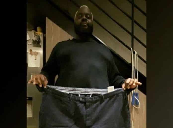 Fier de ses résultats, il a publié sur Instagram un cliché de lui à côté d’un de ses vieux jeans, bien trop grand pour lui aujourd’hui :