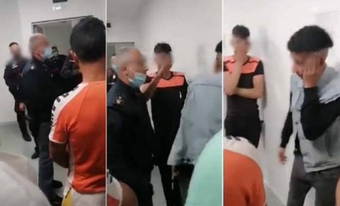 « Frappe-le plus fort que ça ! » lui lance-t-il, lorsque la gifle n’est pas suffisamment brutale. Le policier gifle alors le même jeune en s’agaçant : « C’est comme ça qu’il faut le frapper ! »