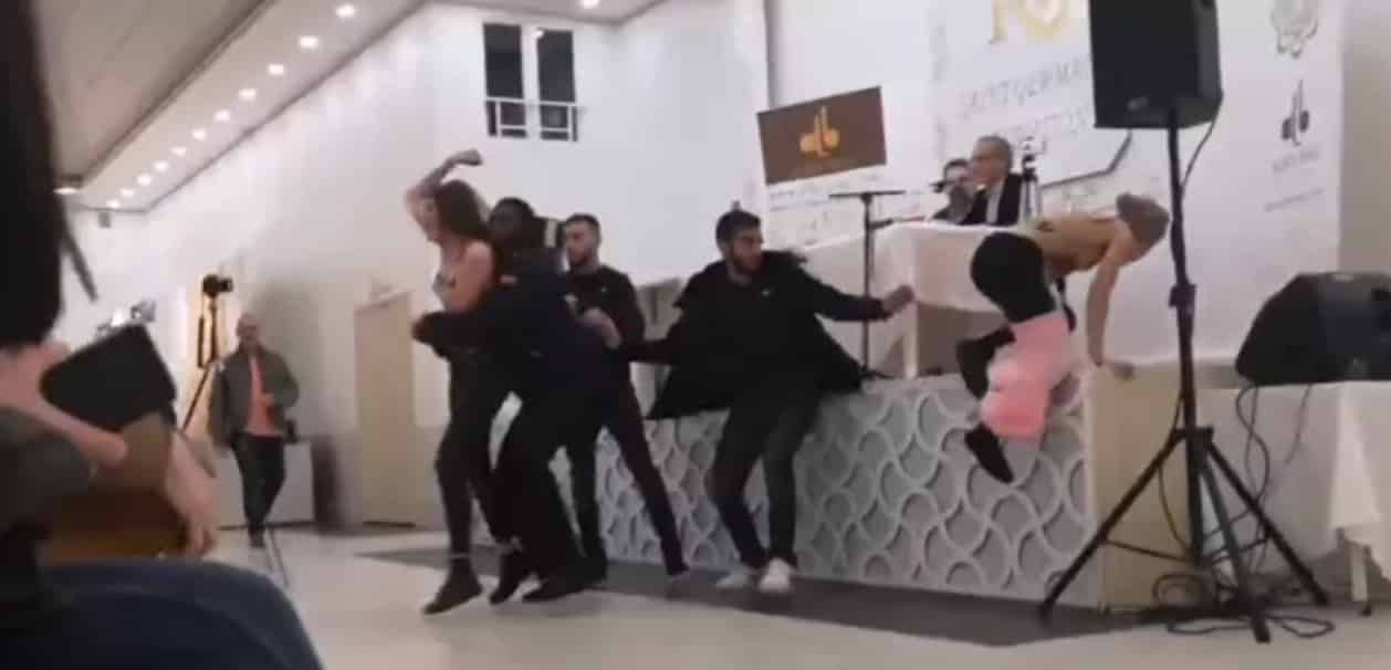 Vendredi 29 novembre, deux Femens ont perturbé une conférence donnée par le conférencier Tariq Ramadan à Saint-Germain-lès-Corbeil. L’événement était intitulé «Face à l’islamophobie et à l’injustice : résister avec foi et intelligence».