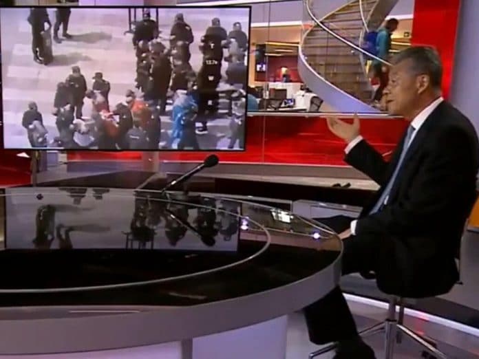 Montré des images de drones qui semblent montrer des Ouïghours ayant les yeux bandés et conduits à des trains, et qui ont été authentifiées par les services de sécurité australiens, il a dit qu’il « ne savait pas » ce que la vidéo montrait et « parfois vous avez un transfert de prisonniers, dans n’importe quel pays ».