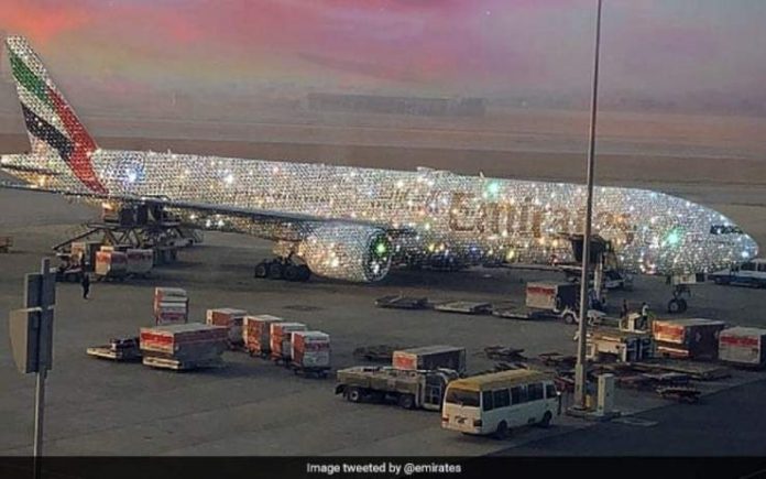 La compagnie Emirates a couvert de pierres précieuses l’un de ses avions et a posté le cliché sur internet.