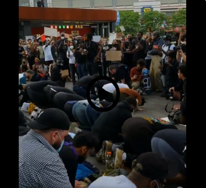 « Lorsque les musulmans se sont agenouillés pour prier lors d’une marche Black Lives Matter à Brooklyn, les manifestants ont formé un mur humain pour les protéger du NYPD C’est la beauté de la solidarité. »