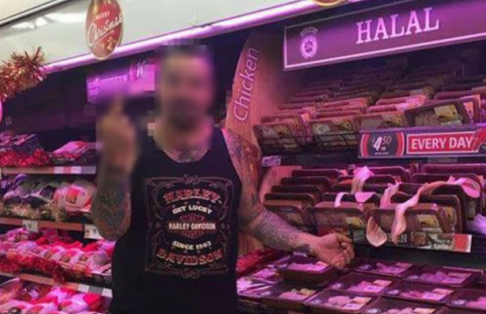 Un Australien s’est fait prendre en photo près d’un rayon boucherie halal d’un supermarché après y avoir déposé des tranches de jambon qu’il avait soigneusement dispersées tout le long du rayon.