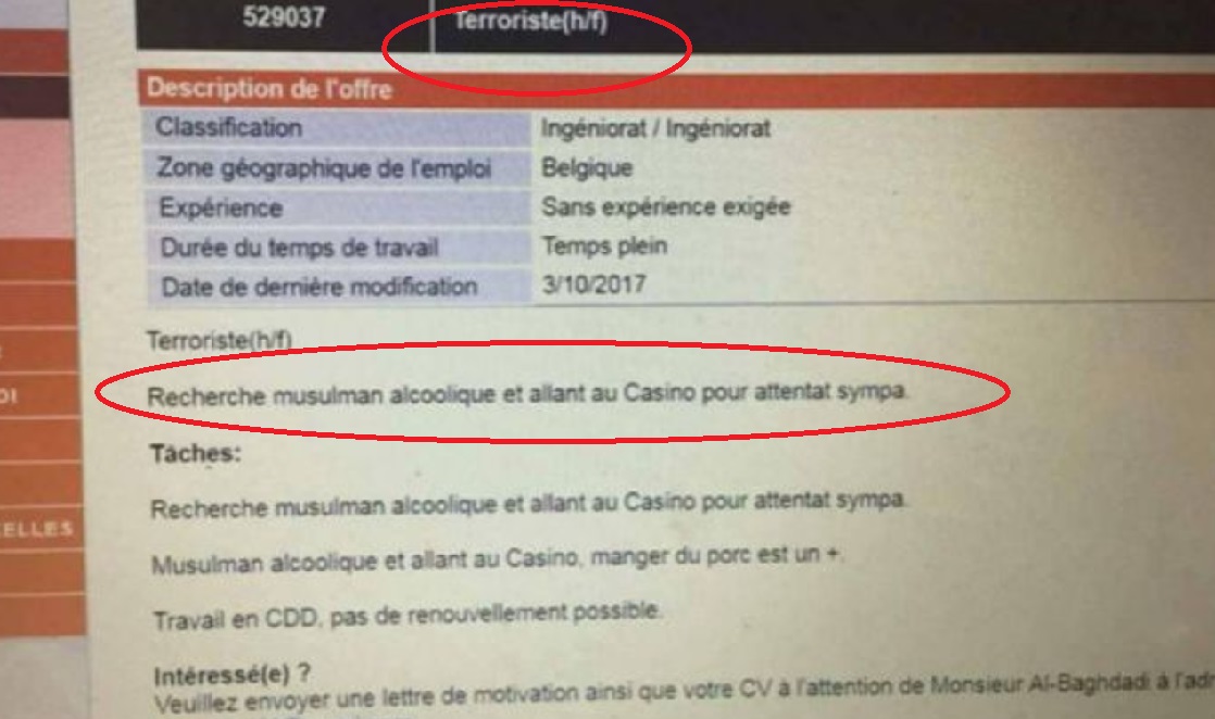 Les demandeurs d’emploi ont eu une drôle de surprise en découvrant mardi matin cette annonce sur le site belge de l’Office régional bruxellois de l’Emploi.