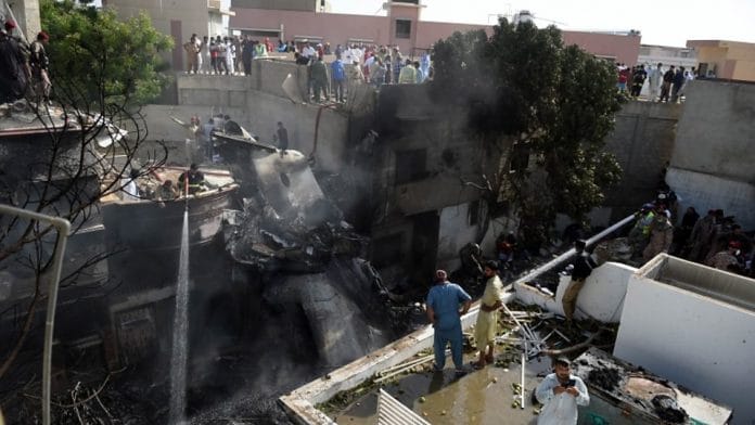 L’avion Pakistan International Airlines (PIA) était sur le point d’atterrir à l’aéroport international de Karachi Jinnah lorsqu’il est descendu parmi les maisons, envoyant des panaches de fumée dans l’air qui pouvaient être vus à une certaine distance.