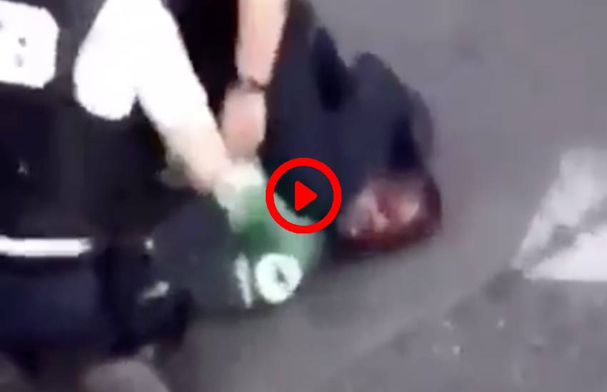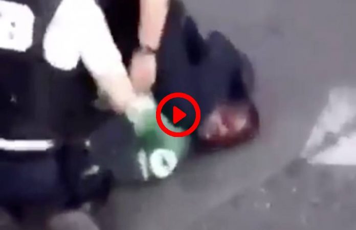 Les faits se sont déroulé aujourd’hui sur paris Fougeres 20 ieme l’agent n’hésite pas à employé la même méthode qui a tué #georgefloyd#,alors qu’il est menotté donc neutralisé…
