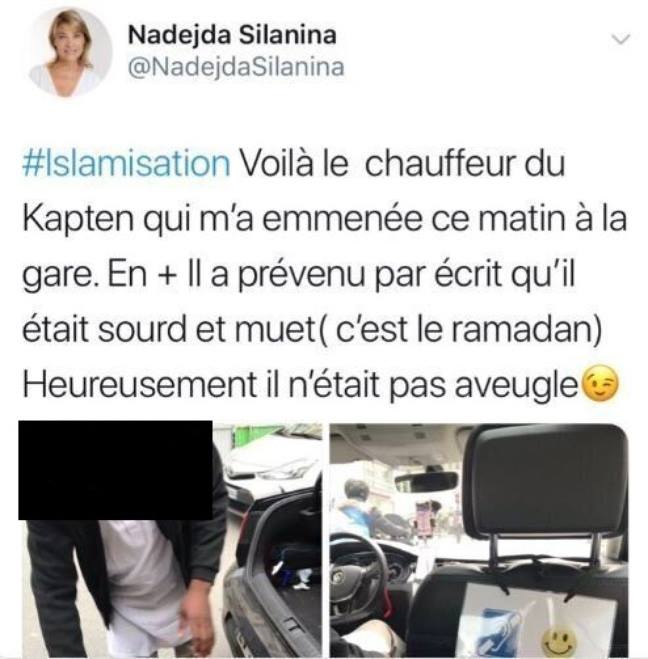 Un peu plus tard, elle a reconnu s’”être trompée”, présentant ses excuses pour avoir “commis une injustice à l’égard de cet homme”. Nadjda Silanina explique qu’elle voulait “dénoncer la dégradation de la condition des femmes, rabaissées par des islamistes”, sa précipitation à incriminer l’islam et les musulmans sans aucun argument a porté un coup dur à sa stratégie pré-electorale mais c’était sans compter sur les internautes de toutes confessions qui face à l’énormité de ses propos sordides n’ont pas manqué de l’afficher en la ridiculisant .