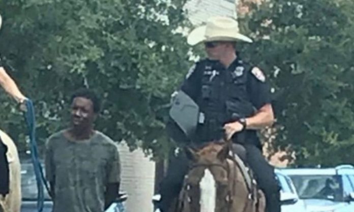 Ce cliché a fait le tour du monde et a choqué un grand nombre d’internautes. Donald Neely, un homme noir américain a été arrêté pour violation de propriété privée puis menotté et tiré par une corde par deux policiers à cheval ! Cette scène n’est pas sans rappeler l’histoire sombre de l’Amérique esclavagiste.