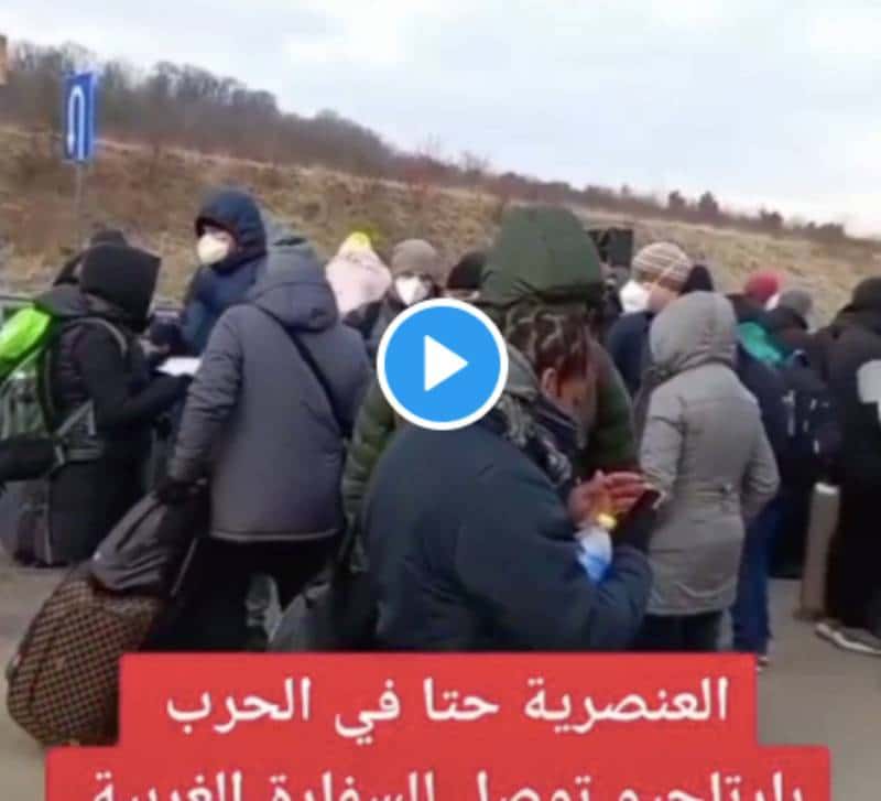 Pendant que les réfugiés ukrainiens sont autorisés à traverser les frontières, les arabes et les africains se voient interdire l’accès par les gardes frontières, les laissant exposer aux frappes depuis plusieurs jours.