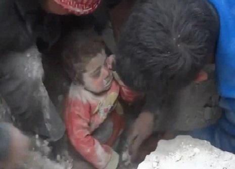 En Syrie, dans la ville d’Alep, un très jeune garçon a miraculeusement été retrouvé vivant alors qu’il était enseveli dans les débris d’une maison qui s’est écroulée, apparemment suite à une attaque des forces de Bachar el-Assad le dimanche 22 janvier dans le quartier Almasranih.