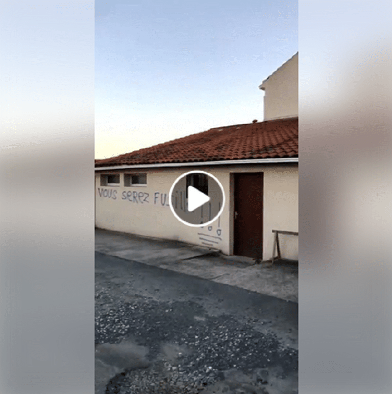 « Vous serez fusillés ! » apparaît à deux reprises sur les murs de l’enceinte de la mosquée.