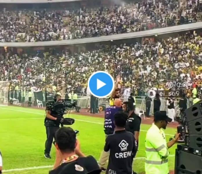Nouvellement arrivé en Arabie saoudite, Karim Benzema fait des émules auprès des supporters du club al-Ittihad. Après avoir filmé le joueur sur la pelouse, un supporteur a lancé son téléphone portable sur la pelouse pour que Benzema fige le moment dans les mémoires.