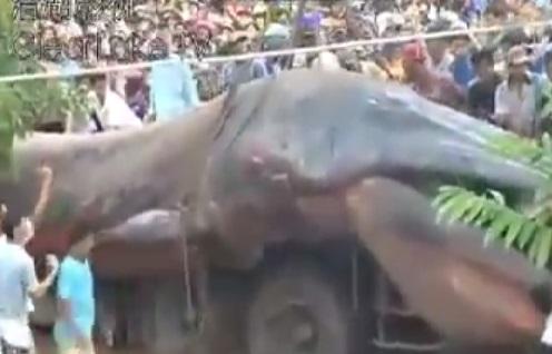 Ce gigantesque animal de forme allongée qui a nécessité un semi-remorque pour le transporter, est d’ores et déjà décrit comme un monstre géant.