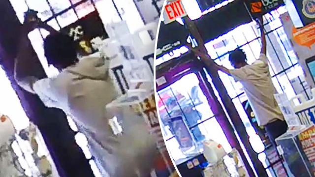 La présence de trois femmes dans le magasin ne fait pas peur à ce voleur sans scrupule, d’ailleurs que pourraient-elles faire pour l’arrêter ?