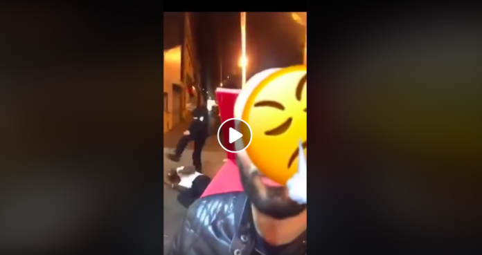 Depuis, une vidéo qui circule sur les réseaux sociaux montre un homme à terre qui se fait violemment agressé par un policier lui assénant de forts de coups de pieds à la tête.